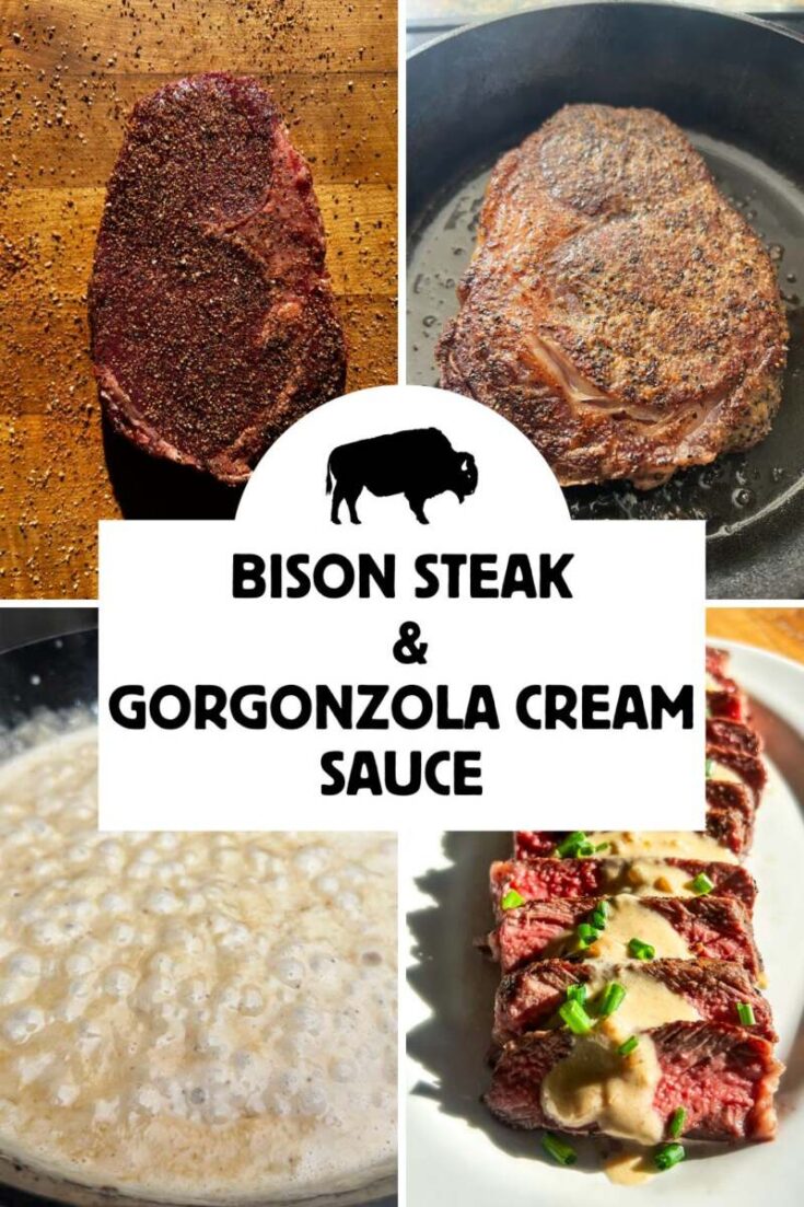 • Drizzle the gorgonzola cream sauce over the top of the bison steak