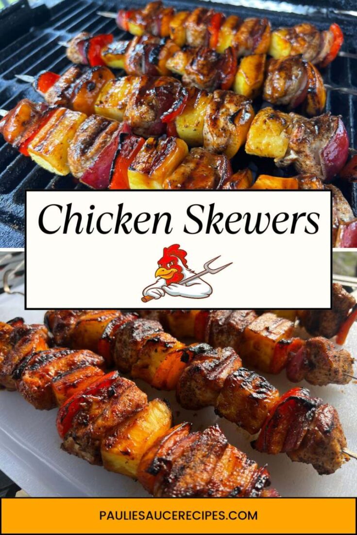 Juicy, tender pieces of seasoned chicken threaded onto skewers with sweet, caramelized pineapple chunks create a delightful combination of flavors and textures. The chicken is seasoned with a blend of savory spices and brushed with a tangy BBQ sauce, adding a smoky, rich taste that perfectly complements the sweetness of the pineapple. Grilled to perfection, these skewers offer a delicious and vibrant dish, perfect for summer barbecues, family gatherings, or any time you crave a flavorful and easy-to-make meal